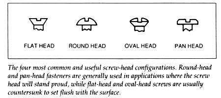 For all their virtues, self-tapping screws do have some notable limitations and drawbacks. The number of times they can be removed and redriven is finite; sooner or later they wear out the hole, diminishing their holding power. Holding power is also reduced if the pilot hole is oversized, and they may be impossible to drive if the pilot hole is undersized. Remember too that the holding power of the screw is no greater than the strength of the material into which it is driven. Soft woods, thin laminates, and thin metals cannot carry much of a load. Conventional wood screws are superior for fastening wood joinerwork, but they should never be used to fasten into fiberglass laminates.
